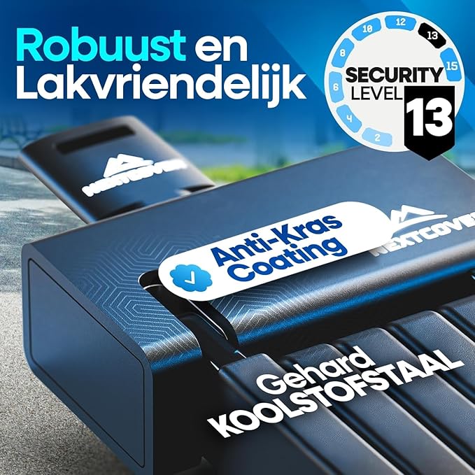 GEEN KRASSEN OP JE FRAME – Je bent zuinig op je motor. Daarom is dit slot, ondanks het extreem sterke geharde koolstofstaal, uitgerust met een zachte beschermlaag. Dus de lak van je dure E-fiets, racefiets of stadsfiets blijft altijd vrij van krassen en schade.