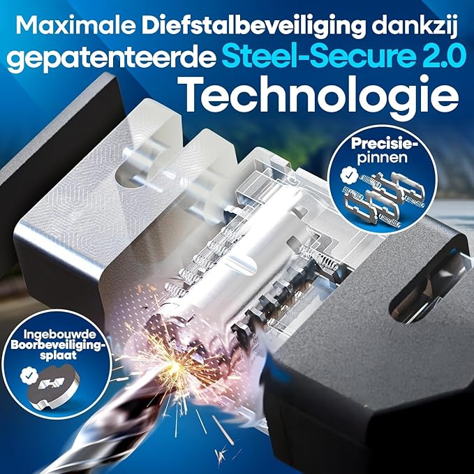 STOP FIETSDIEVEN DIRECT – Fietsdiefstal is helaas de norm. Onze geavanceerde SteelSecure-technologie en de speciale anti-boorplaat maken dit opvouwbare slot tot een nachtmerrie voor dieven. Parkeer je fiets met gemoedsrust, zelfs in de drukke stad.