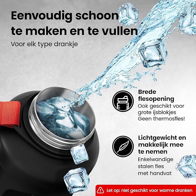 100% RVS | 100% BPA-VRIJ – Hoge kwaliteit geborsteld 18/8 roestvrij staal absorbeert geen geur of smaak. Certificeringen voor contact met voedingsmiddelen garanderen dat de samenstelling, geur of smaak van uw dranken op geen enkele manier wordt beïnvloed. Alle drankkapjes zijn BPA- & aftalaatvrij voor je gezondheid. Voor gepoedercoate modellen en sluitingen raden wij aan om de flessen met de hand af te wassen.