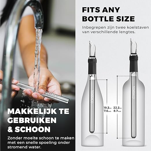 Of het nu een koelbalk van verschillende groottes is (19,2 cm en 22 cm), je kunt de 2 koelstaven van verschillende maten (19,2 cm en 22 cm) wijnkoeler op elke fles monteren, of het nu bordeaux, bordeaux of champagne is. Het exclusieve ontwerp en de innovatieve functies maken van uw VINENCO wijnkoeler een must-have voor elke gelegenheid en een speciaal cadeau voor al uw dierbaren.